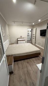 В квартире выполнен качественный евроремонт. Просторная кухня оборудована всей необходимой мебелью и техникой: холодильником, микроволновой печью, электрическим чайником, телевизором. В комнате также есть вся необходимая мебель, включая утюг, пылесос, гладильная доска, а окна выходят на улицу, что обеспечивает хорошее естественное освещение. Совмещённый санузел оснащён стиральной машиной, стеллажом с полками. Также в квартире имеется лоджия, где можно насладиться утренним кофе.