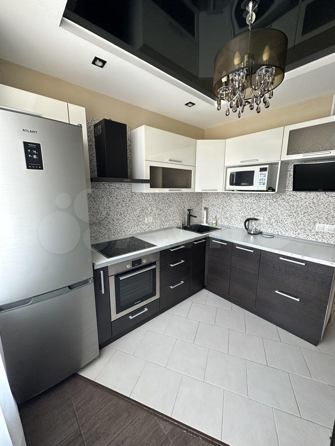 Из техники: холодильник, микроволновая печь, варочная панель, духовой шкаф, чайник, стиральная машина.