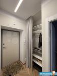 Открытая полка для книг. Прихожая с шифоньером, полками для вещей, обувницей и вешалками.