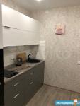 Из обстановки: кухня с варочной панелью и вытяжкой, микроволновая печь, электрический чайник, посуда так же имеется. Стол, два стула и две табуретки (на балконе). ТВ с встроенным вайфаем, висит на подвижном кронштейне, то есть его можно развернуть в сторону кухни. Двухкамерный холодильник.