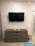 Сдаётся однокомнатна квартира от собственника. В квартире сделан современный ремонт, все новое, мебель и техника. Имеется все необходимое для проживания: посуда, одеяла, подушки, гладильная доска, утюг, сушилка для белья, электрический чайник. В квартире установлен бойлер на случай отключения горячей воды. Есть кондиционер, уютный балкон. В комнате стоит двухспальная кровать и диван.