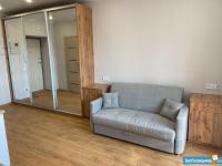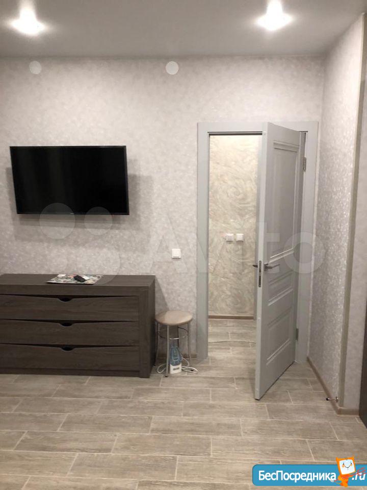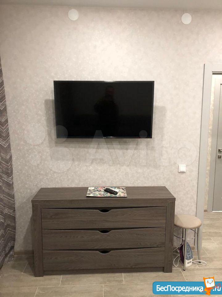 Новая студия, дизайнерский ремонт, полностью меблирована в едином стиле, вся бытовая техника в наличие, бытовые принадлежности, посуда и др. По потребности может дополняться за счёт арендодателя.