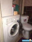 Телевизор,стиральная машина,новая двухспальная кровать и вместительные шкафы для хранения.На кухне холодильник,микроволновка и обеденный стол.