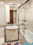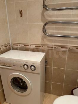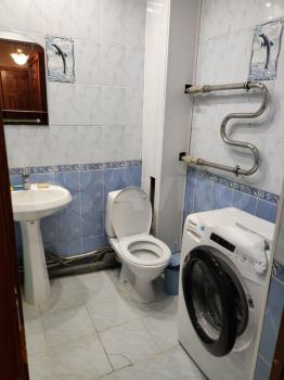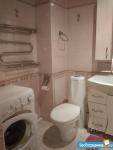 Санузел coвмещённый, оформлен плиткой, установлена ванна и стиральная машина. Есть кладовка- гардеробная.