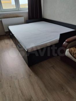 Квартира полностью готова к проживанию. В комнате и на кухне есть необходимая мебель. Из техники холодильник и стиральная машина. Окна выходят во двор, что гарантирует тишину и спокойствие.