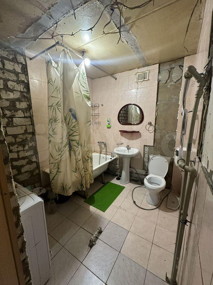 Санузел совмещенный, ящик с зеркалом новый. Место под раковиной для стиральной машины.