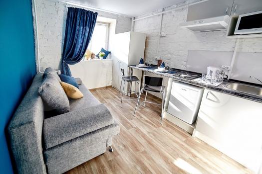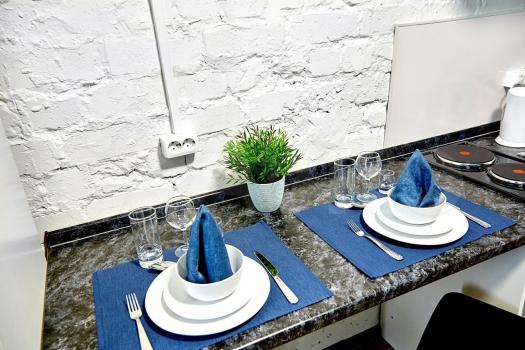 В студи есть все необходимое для комфортного проживания 1 человека.