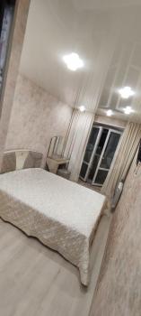 В квартире выполнен косметический ремонт, что создает приятную атмосферу для проживания. Комната оборудована необходимой мебелью для комфортного отдыха и работы. Кухня также полностью меблирована, есть холодильник. В ванной комнате установлена душевая кабина и стиральная машина. Окна выходят во двор, поэтому в квартире тихо и спокойно.