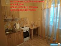 Сдаю светлую квартиру-студию в новостройке на Автозаводе для некурящих граждан. Квартира очень теплая со свежим ремонтом и просторной лоджией, все новое. Остановка общественного транспорта пос. "Аэродромный" (находится в 150 метров от дома). Рядом разные магазины и Сбербанк. Посуточно или по месяцам. В квартире: диван на 2 спальных места, комод, торшер, кухонный гарнитур с индукционной панелью, вытяжкой, удобная глубокая керамич.мойка, посуда, столовые принадлежности, холодильник, одеяло 2х-спальное, 2 подушки. В прихожей вешалка, в ванной зеркальный шкафчик, стиральная машина.