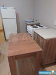 В квартире новая мебель. Свежий ремонт. Никто не жил. Есть стиральная машина, телевизор, кухонный гарнитур.