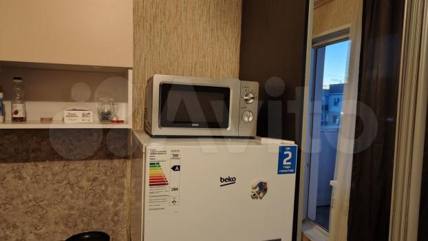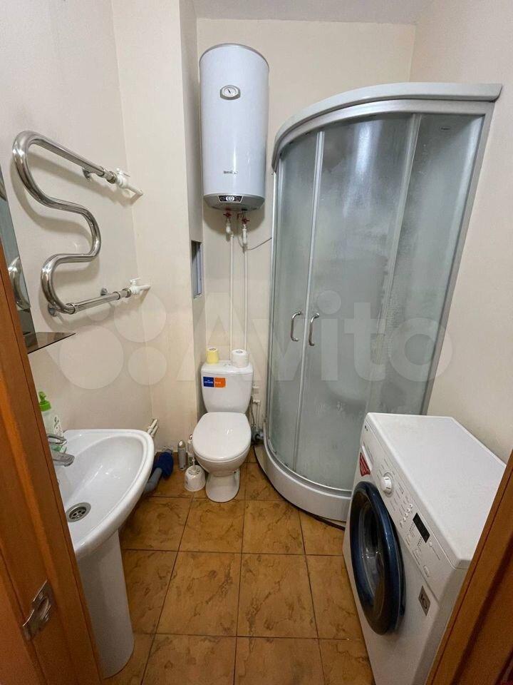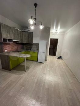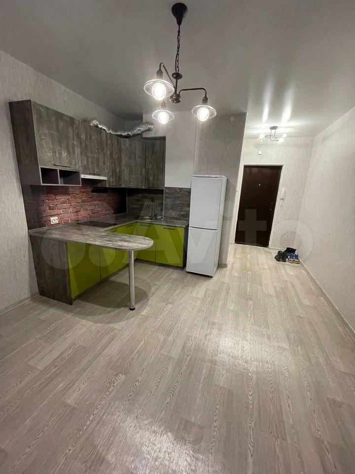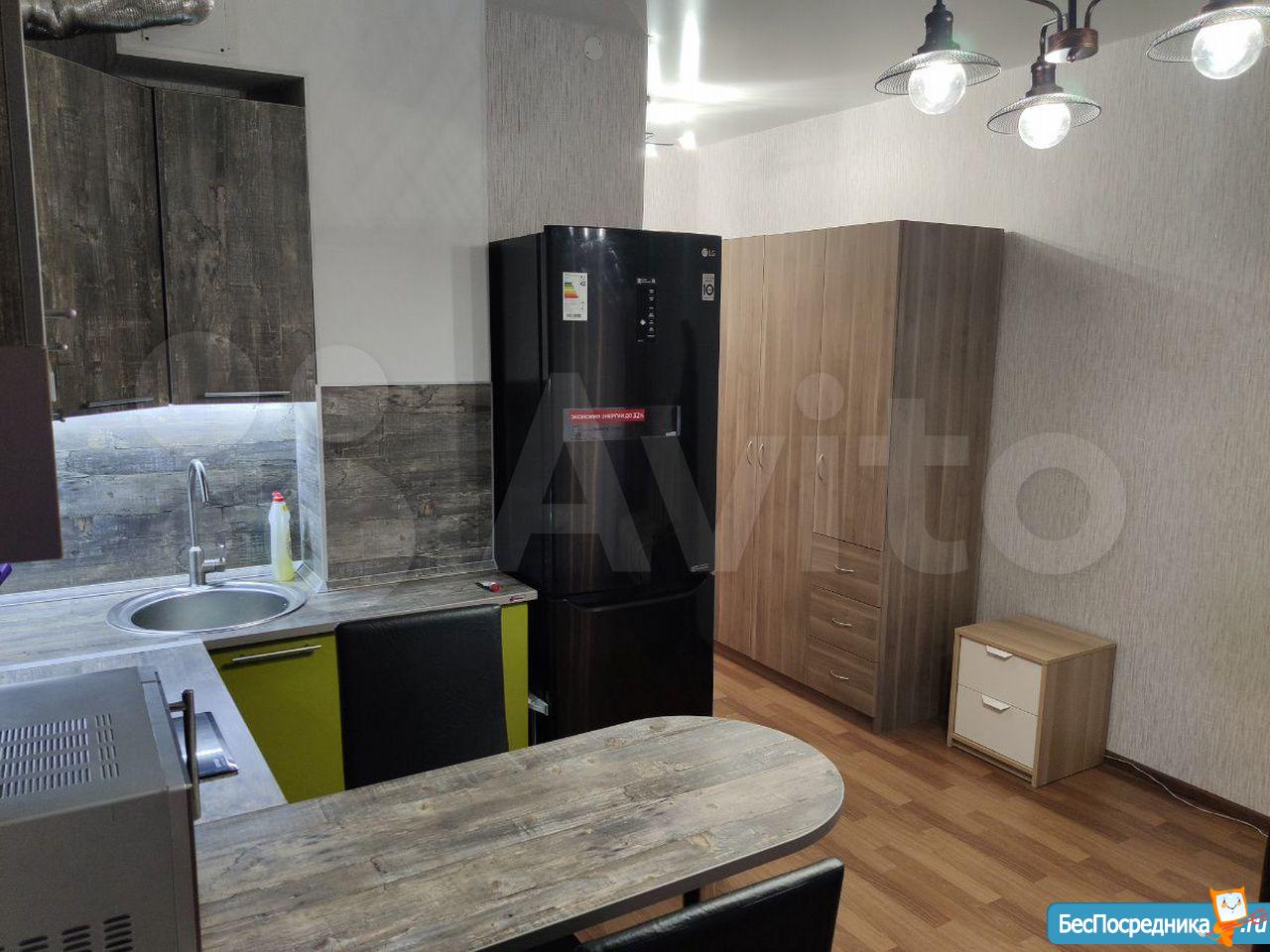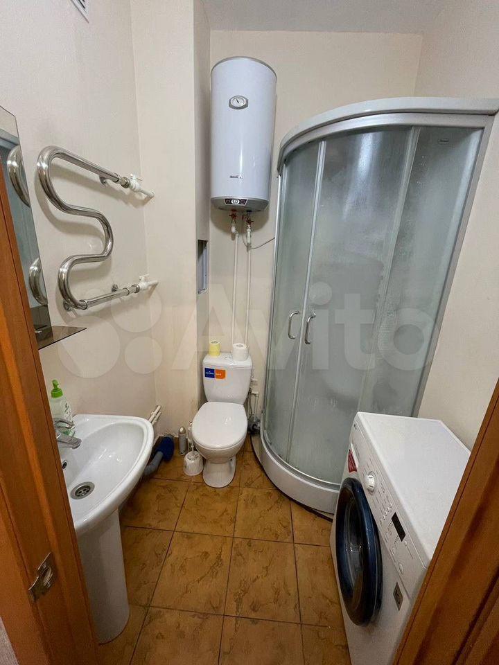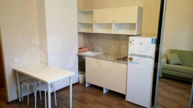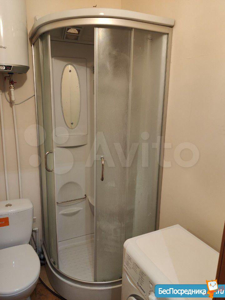Студия, есть все необходимое: диван, стол, стулья, кухонный гарнитур, плита, холодильник, душевая кабина, стиральная машина , микроволновка... в ЖК Акварель.