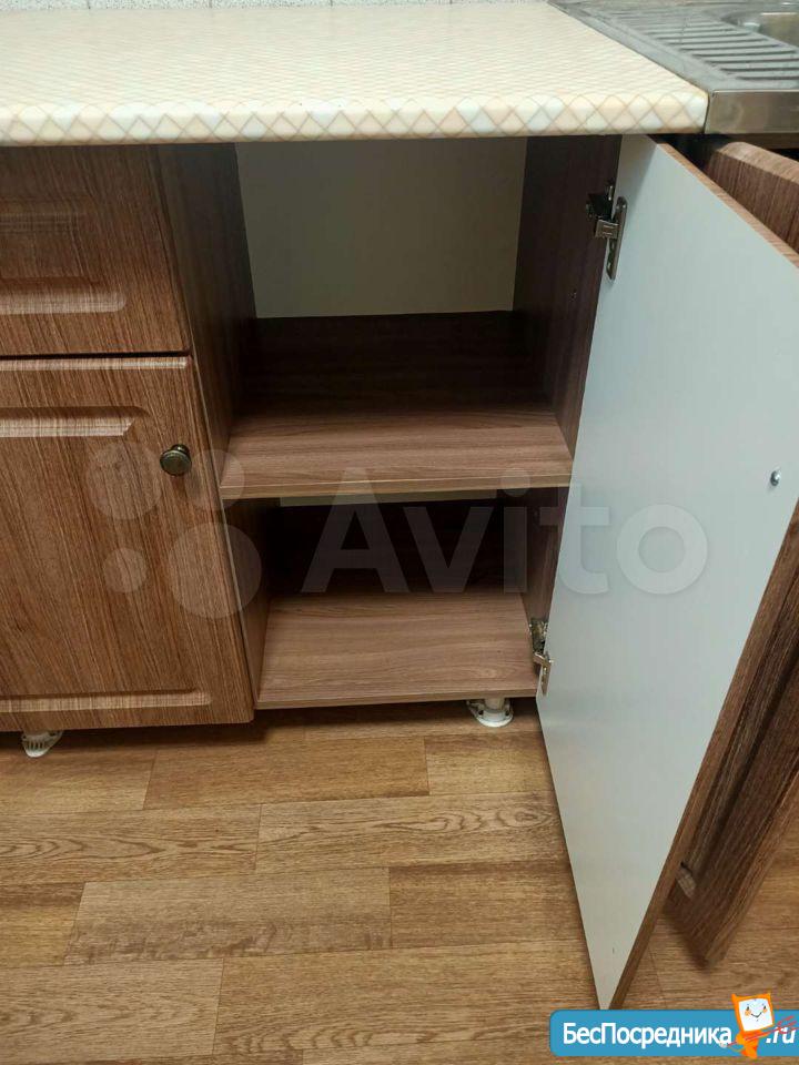 кухонный гарнитур угловой со встроенной техникой, уголок столовый, холодильник, чайник, свч печь,посуда, мультиварка.