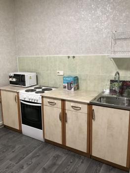 В квартире присутствует кухонный гарнитур, варочная панель без духовки, стиральная машина (новая), телевизор, 2 шкафа и журнальный столик плюс комод, холодильник, чайник имеется спальное место диванчик. Диван раскладывается. Нет только микроволновки.