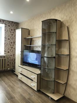 В квартире сделан косметический ремонт. Есть всё необходимое для жизни: на кухне и в комнате установлена мебель, а также имеется необходимая техника — холодильник и стиральная машина. Санузел совмещённый.