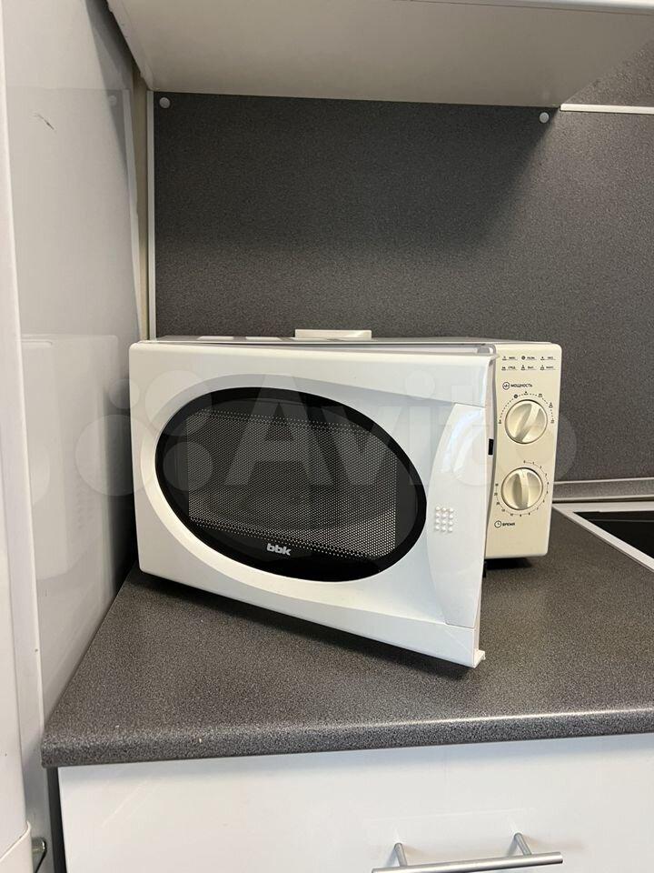 холодильник, плита, микроволновка, стиральная машина, телевизор.