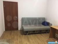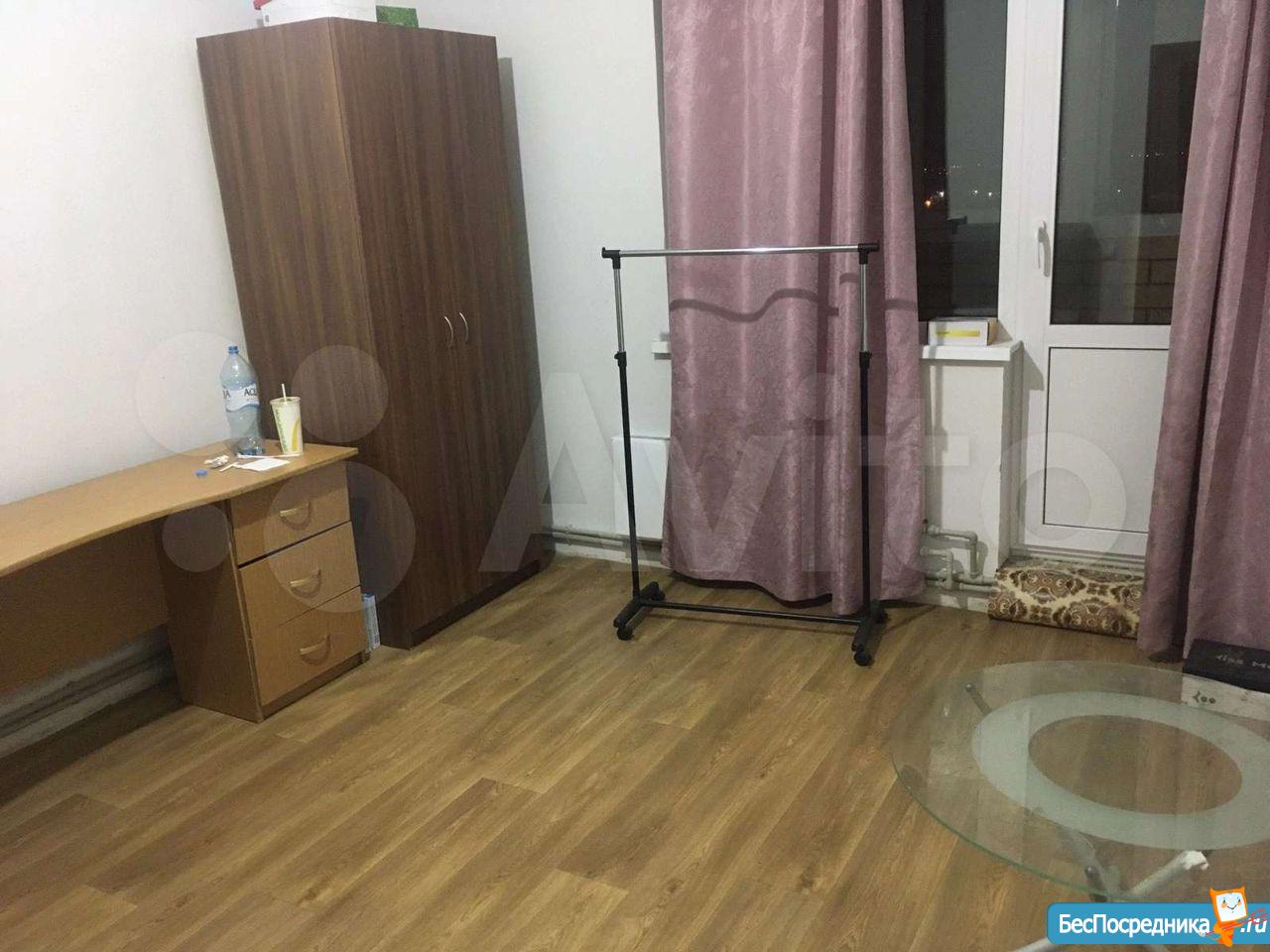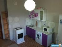 Комната с лоджией. 2 дивана, компьютерный стол, стулья, шкаф, комод. Холодильник, плита, микроволновка, стиральная машина. Коммуналка включена.