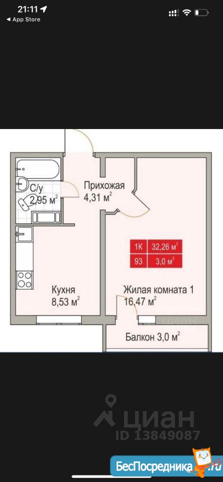 Общая площадь квартиры составляет 32,3 кв. метров, кухня - 8,5 кв. метров, комната 16,5 кв. метров. Имеется вся необходимая для проживания мебель и бытовая техника. ( на фото не все, ещё довозим)