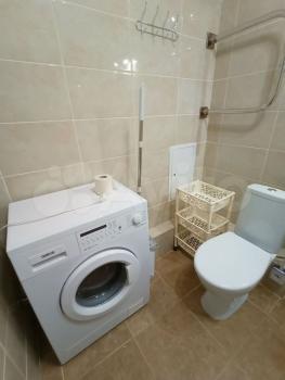 В квартире имеется новая стиральная машинка, микроволновка, холодильник, плита с вытяжкой и духовка. Также квартирантам предоставляется утюг, напольная сушилка для одежды, чайник, набор ножей и посуды.