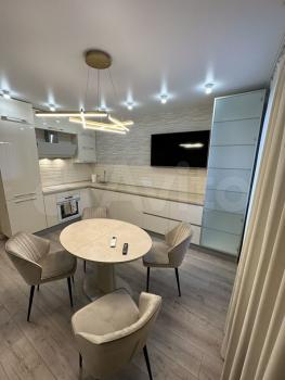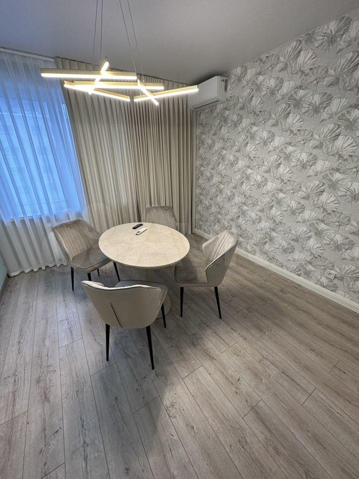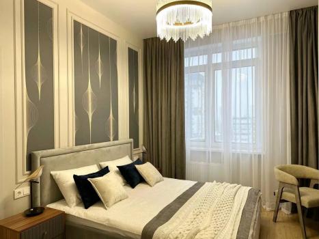 Сделан дизайнерских ремонт, качественная мебель, кухня (Lоrеnа), есть вся техника, кондиционер, потолки с теневым профилем и подсветкой в комнатах. Два смарт тв, встраиваемые посудомоечная машина, холодильник, духовой шкаф, индукционная плита, микроволновая печь. Вся техника от качественных проверенных производителей. Посуда, одеяло, подушки, чайник, пылесос, постельное белье.