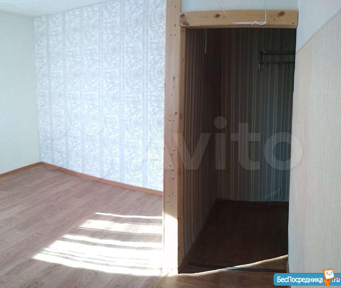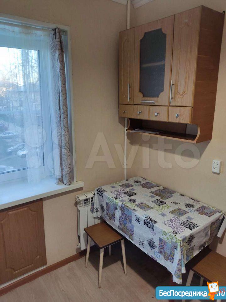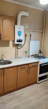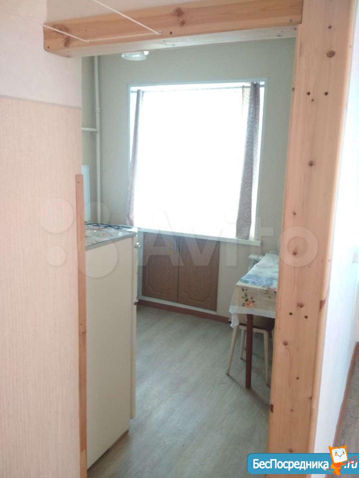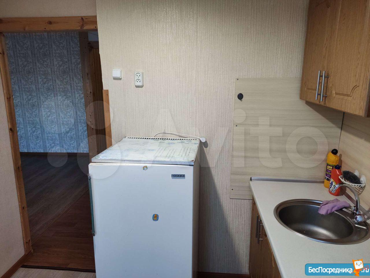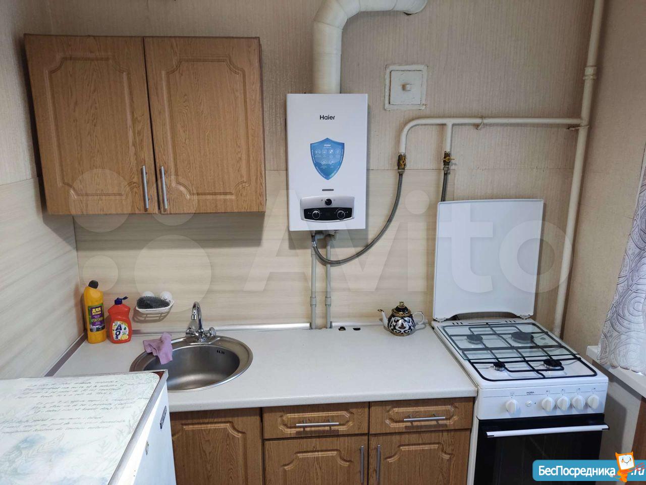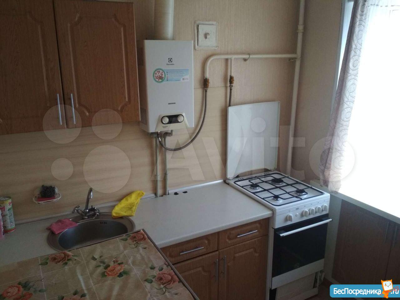 В квартире есть кухонный гарнитур, стол, стулья, холодильник. Комната полностью свободна.Установлена новая газовая колонка(на батарейках).