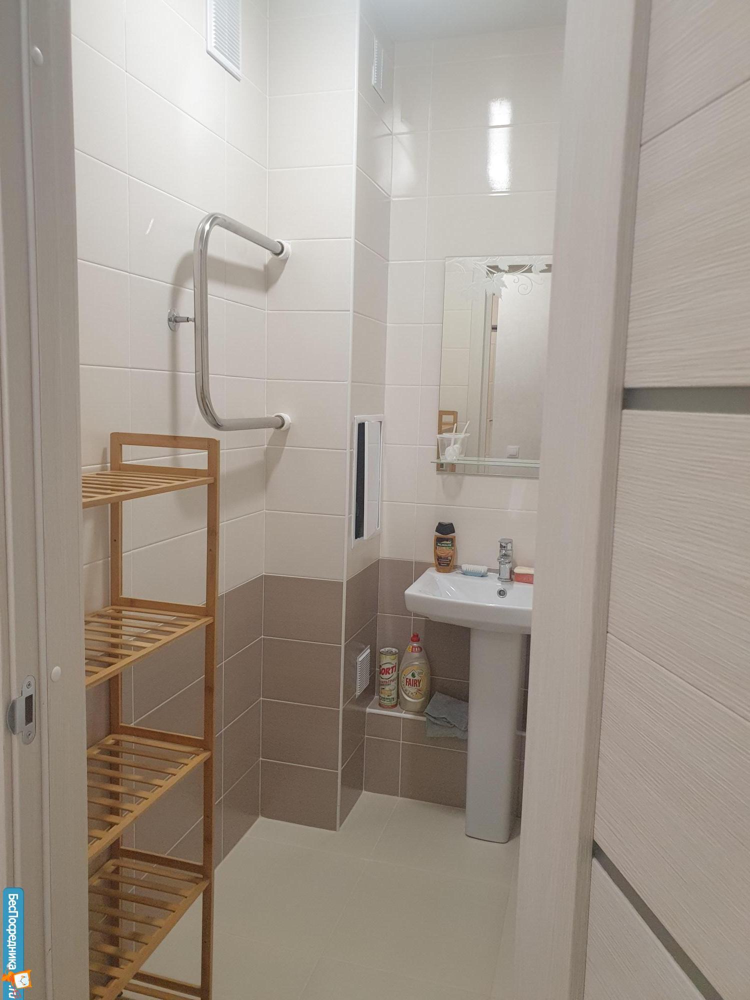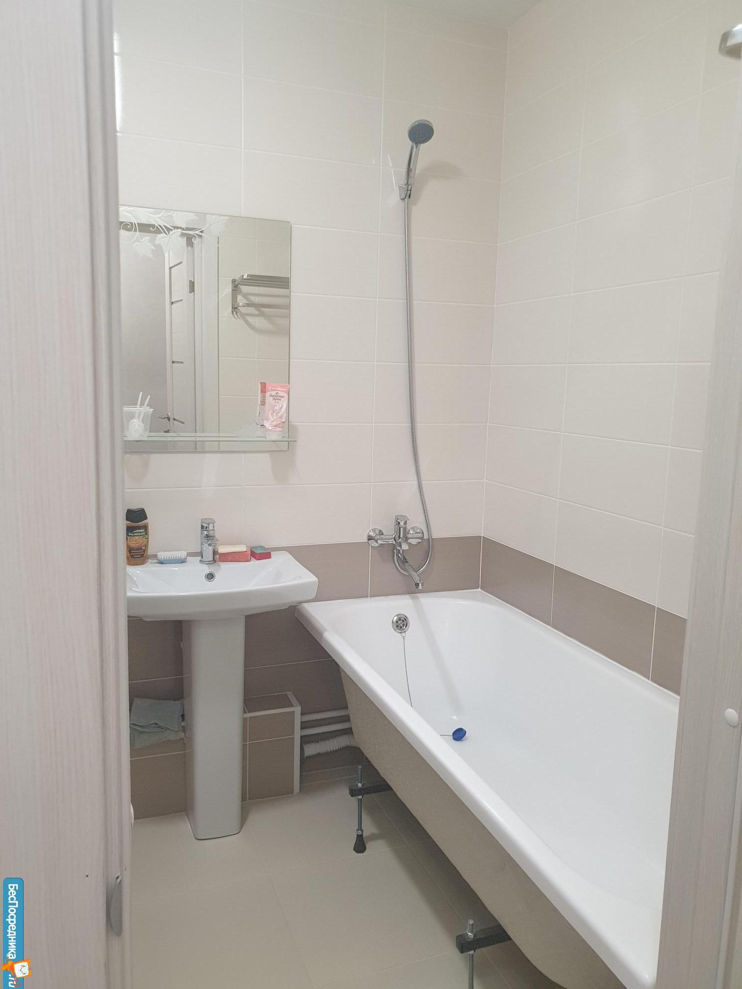В ванной комнате стандартная ванна 170см. Большая кухня, при желании можно поставить диванчик и спать ?️ . Есть гардеробная комната, вещи не будут занимать место в комнатах.