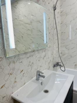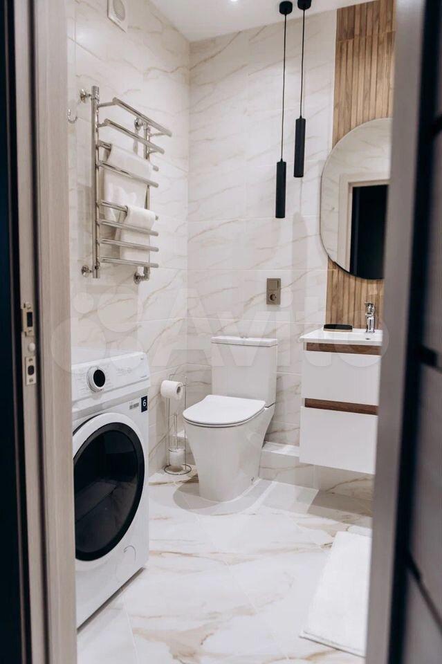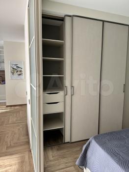 Много места для хранения: в прихожей и спальне шкафы купе. Кухня укомплектована кухонным гарнитуром со встроенной бытовой техникой, включая посудомоечную машину и микроволновку. Большой санузел с ванной, а также балкон с окнами в пол и лаунж-зоной.