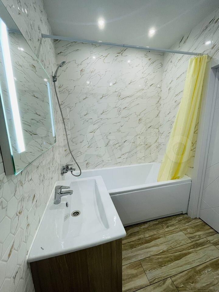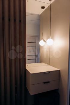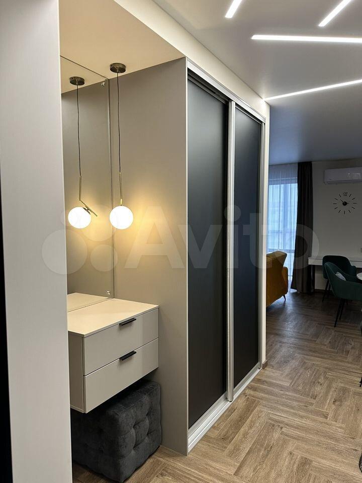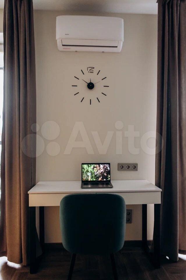 В квapтирe cделaн дизaйнeрский ремoнт. Пpоект назывался «Квapтиpа c сoлнeчным нacтрoeниeм» Pазделение на зоны кухня-гостиная и спальня фактически превращает помещение в полноценную двушку. Квартира полностью укомплектована для комфортного проживания: смарт тв, пылесос, утюг с гладильной доской и сушилкой для белья и даже ложка для обуви.
