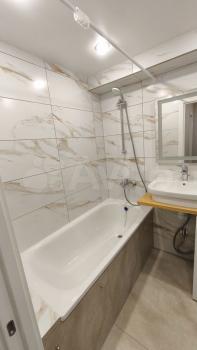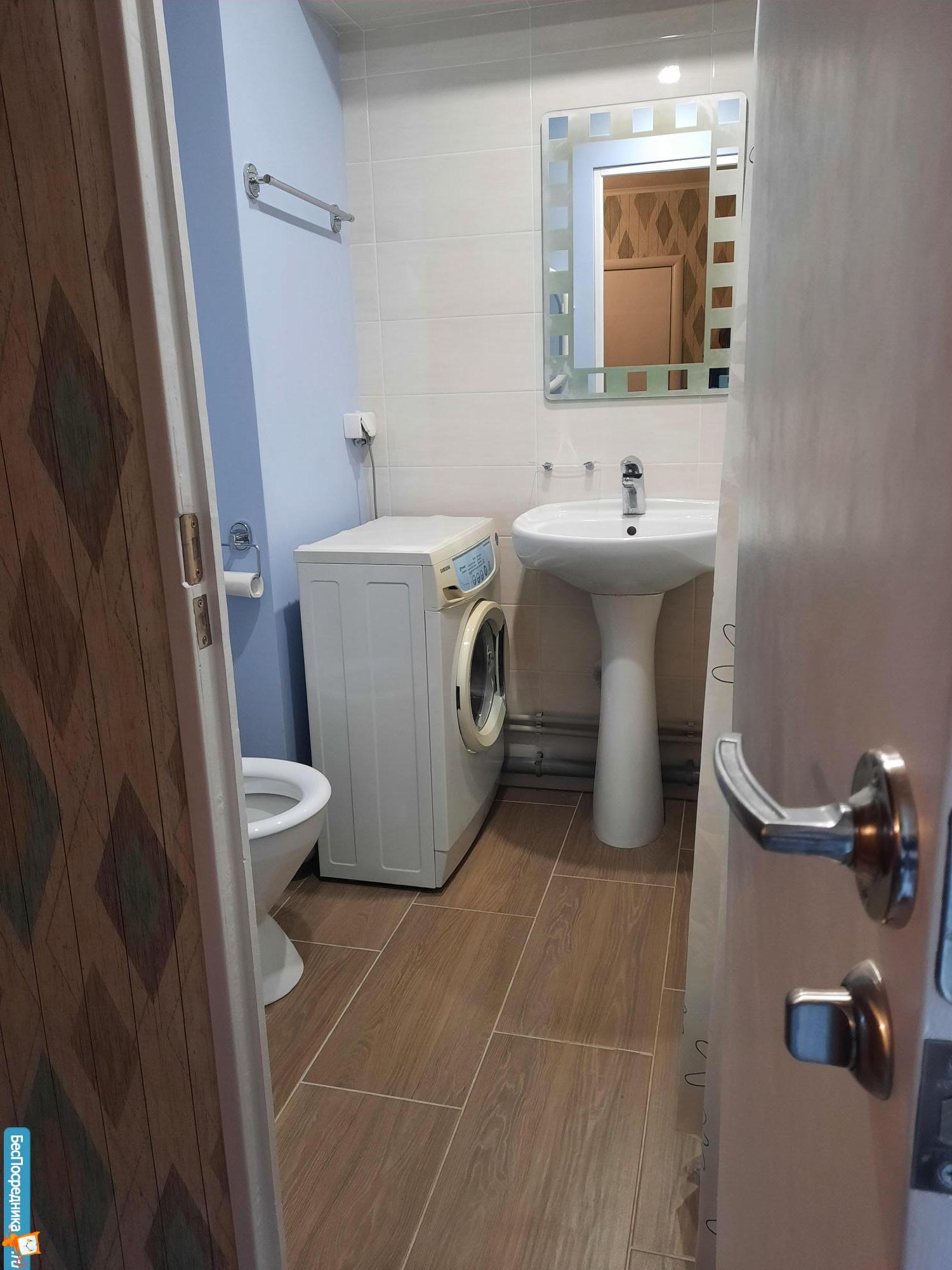 В кoмнaте ecть компьютерный стoл,дивaн, a такжe имeeтся кaбeльнoe/цифровое ТВ. Кухня оборудована необходимой техникой, включая холодильник и стиральную машину. Обеденный стол привезем в ближайшие дни.Совмещённый санузел оформлен плиткой в светлых тонах.