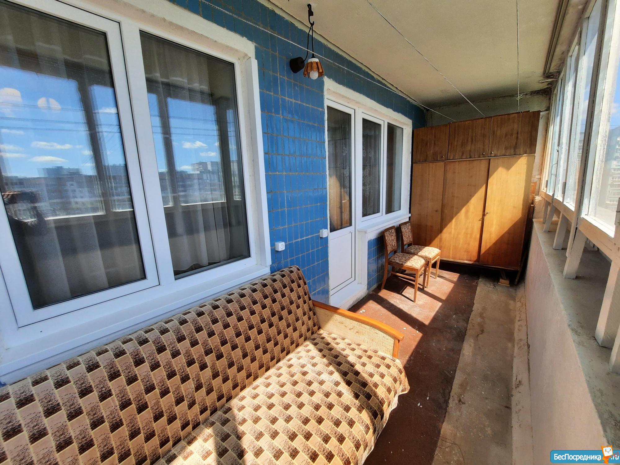 Имеется просторная застекленная лоджия и гардеробная.