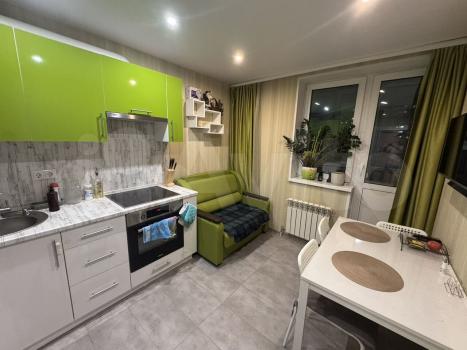 В квартире выполнен свежий евро ремонт. Просторная кухня площадью 11 м² оснащена всей необходимой техникой: холодильник, плита, микроволновая печь и стиральная машина. Также имеется обеденный уголок.