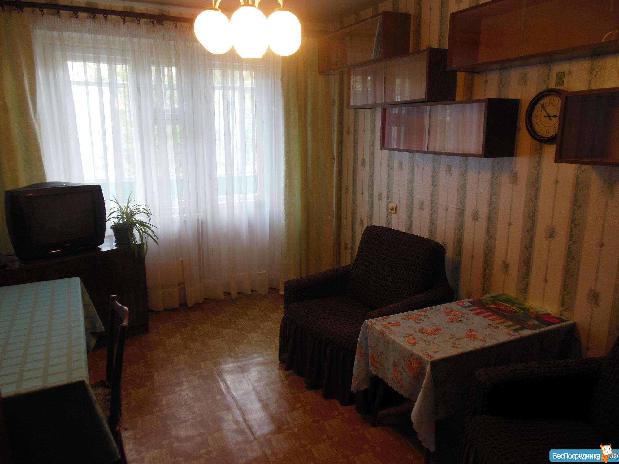 Полностью жилая уютная квартира с мебелью и техникой, стиральная машина, два телевизора, в зале и на кухне, сдам русской семье на длительный срок.