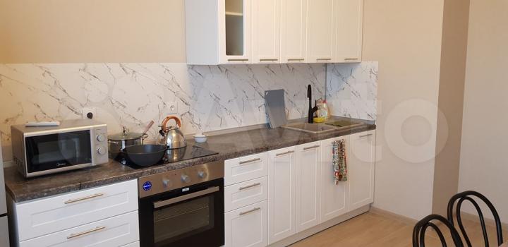 Дом 2023 года, квартира на 1м этаже. Есть вся необходимая мебель (кухня, диван, кровать, шкаф) и техника (холодильник, стиральная машинка, варочная панель, духовой шкаф).