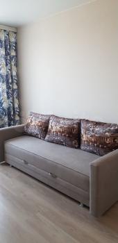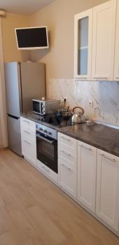 В квартире новый ремонт, есть все необходимая мебель и техника: диван в комнате и кухне, плита, духовой шкаф, холодильник, микроволновая печь, стиральная машина, телевизор в комнате и кухне, большая гардеробная в прихожей, утюг, гладильная доска, сушилка для белья, пылесос.