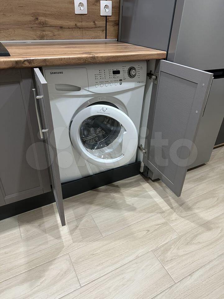 Имеется необходимая для проживания мебель (кухонный гарнитур, раскладной диван, шкаф) и техника (холодильник, стиральная машина, варочная панель, духовой шкаф, микроволновка)