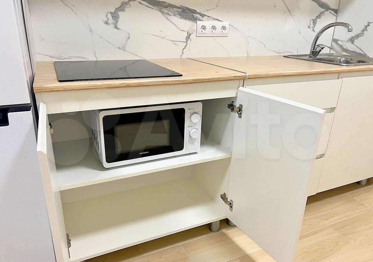 В квартире есть всё необходимое для комфортного проживания. На кухне - гарнитур, электрическая индукционная варочная панель, холодильник, микроволновка, стол и стулья. В спальне – шкаф для одежды. В прихожей – шкаф для верхней одежды, вещей и обуви. В санузле – зеркало и стиральная машина. Также будет диван, который при желании можно будет поставить как в спальне, так и на кухне (если в спальне решите поставить кровать).