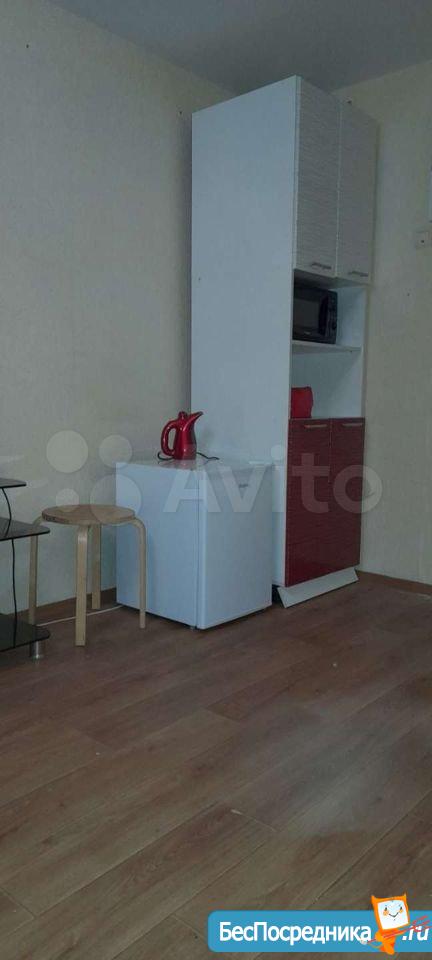 Комната в общежитии,в комнате новый ремонт(ламинат,натяжной потолок,мебель).В комнате отделена зона кухни ,стоит холодильник и кухонные ящики,общежитие чистое,рядом все инфраструктуры. Так же своя стиральная машина.