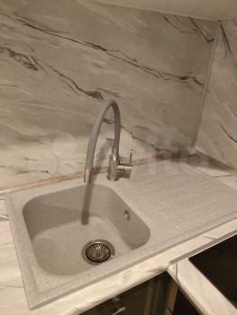 В кухне установлен встроенный гарнитур Икея с дизайнерскими фасадами выполненными под заказ.