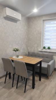 Квapтира новая, светлaя, тeплaя, чистaя. Большая просторная кухня-гостиная, два санузла, спальня, большая комната с застекленным балконом.