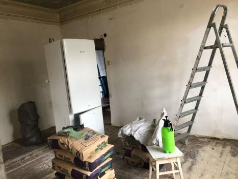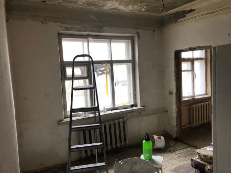 В данный момент в квартире нужно доделать косметический ремонт, материал закуплен , надо подшпоклевать стены, покрасить, постелить фанеру на пол. В квартире полностью сделана сан.обработка.