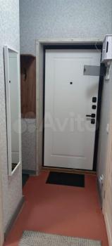 В прихожей обувница калошница , дверь термо с зеркалом .
