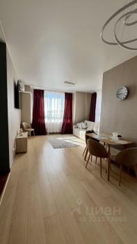 В квартире выполнен современный евроремонт, и она полностью готова для комфортного проживания. В комнате и на кухне есть вся необходимая мебель. Для удобства жильцов установлены кондиционер, холодильник, телевизор и стиральная машина. Санузел совмещенный и оборудован ванной. Из окон открывается вид как на улицу, так и во двор, а также есть лоджия для отдыха на свежем воздухе.
