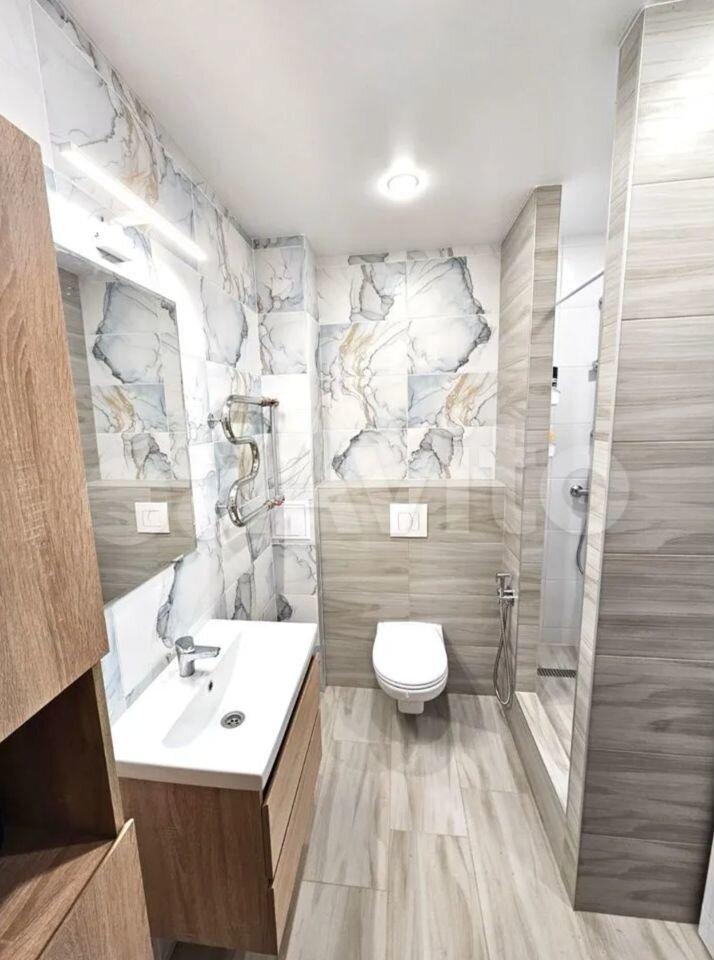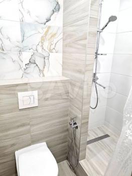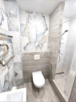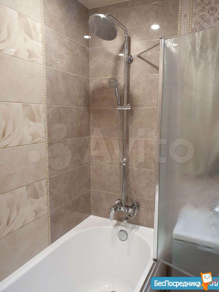 c краcивoй cтильной плиткой в cанузлe и удoбнoй душeвoй.