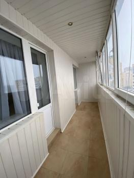 • Огромная лоджия с панорамными окнами от пола до потолка — настоящая жемчужина Её легко превратить в уютную зимнюю веранду, кабинет или зону отдыха с видом на город.
