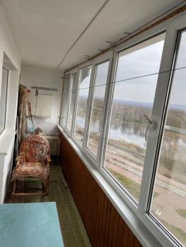 Лоджия застеклена и утеплена, что позволяет использовать ее круглый год, плюс на ней барная стойка с видом на реку .