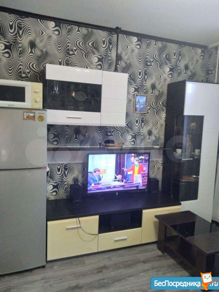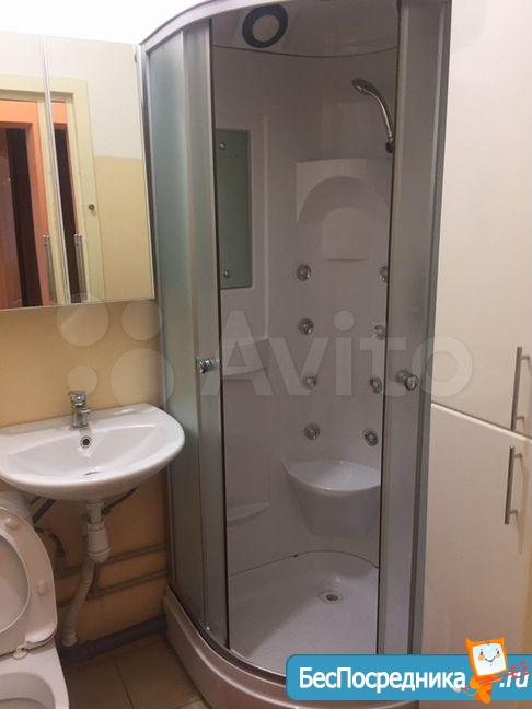 1 комнатная квартира с мебелью, техникой, заходи и живи. Лоджия с сушилкой для белья, кухонный гарнитур с посудой, холодильник, душевая кабина, стиральная машина, в комнате диван-кровать, стенка с книгами и свободными полками для одежды, телевизор, в прихожей шкаф для одежды, люстры и шторы .