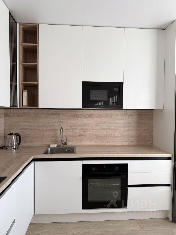 Кухня оснащена встроенной техникой : холодильник, варочная панель, духовой шкаф, посудомоечная машина, вытяжка.