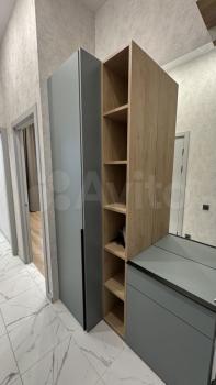 В коридоре (прихожей) шкаф для верхней одежды с закрытыми ящиками сверху, а также банкетка для переобувания.