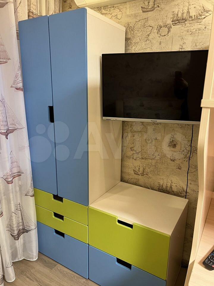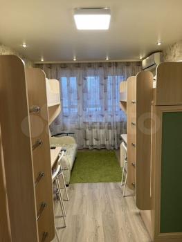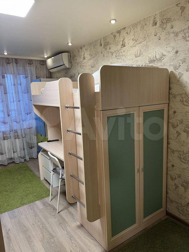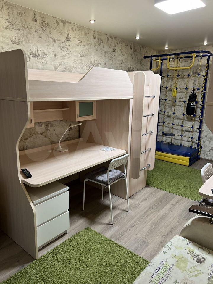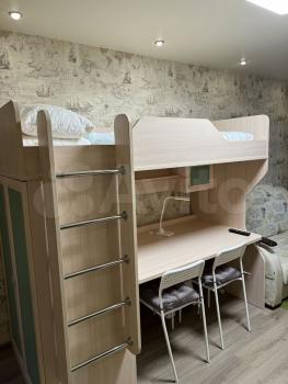 Большой коридор обеспечивает хранение вещей, большая светлая комната , вместительный шкаф, письменный стол и 3 спальных места.