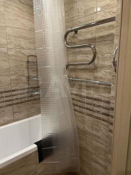 Ванная комната выложена кафелем. В ней установлены новая ванна, новый унитаз, новая стиральная машина-автомат. В просторной кухне (10м2) установлены новые кухонный гарнитур, раковина, новый холодильник (двухкамерный nо frоst), стол и стулья. Комната – на стенах светлые обои, на полу уложен линолеум, натяжной потолок, новые радиаторы отопления. Комната разделена шторой на 2 зоны – спальную часть и гостиную зону. В гостиной части размещен кожаный диван, стол и комод, предназначенные для учебы и работы. В спальной части размещены: новая 2-х спальная кровать с новым матрасом ИКЕА, новый комод, новая прикроватная тумбочка. Из комнаты выход на застекленную лоджию с панорамным остеклением. В прихожей есть новый вместительный шкаф для верхней одежды и кладовая.