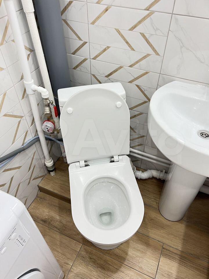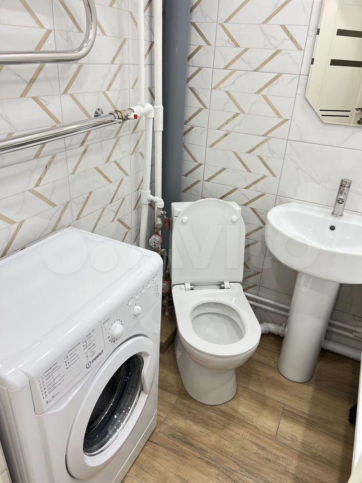 В санузле установлена душевая кабина и стиральная машинка, поменяны трубы и установлена качественная сантехника.